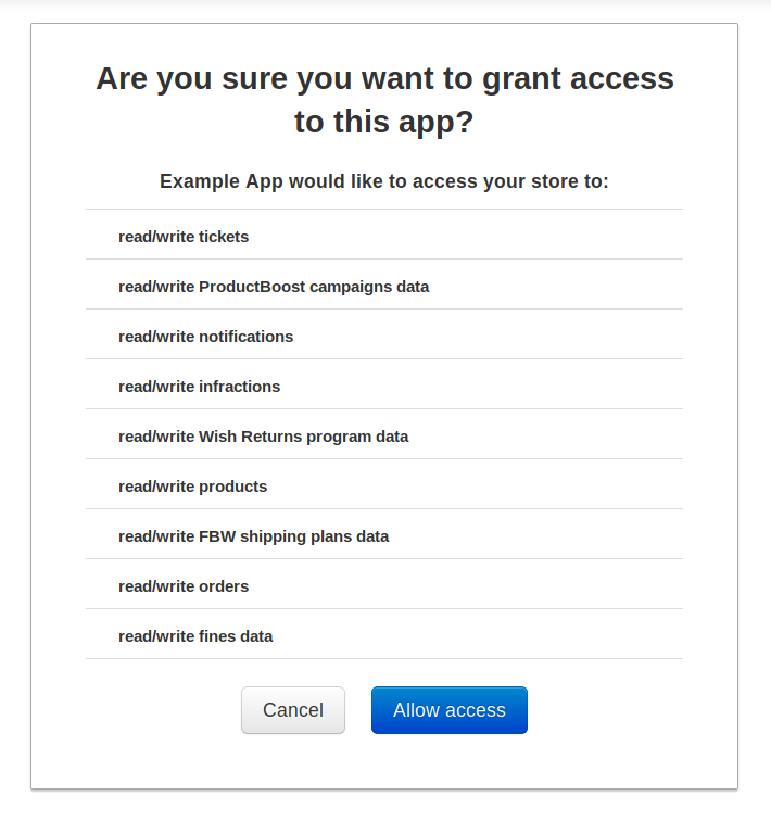 - The merchant finds your app in the Wish App Store and clicks the "Add app" button.